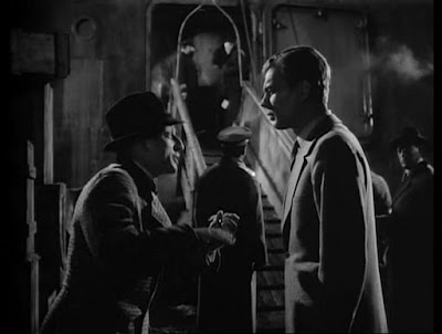 At dinner that night, the new passenger joins Graham at his table and the engineer recognizes him as Peter Banat. Panicked, Graham tells the ship's captain (Richard Bennett) that there is an assassin on board, but the captain thinks that he is crazy and literally laughs in his face.